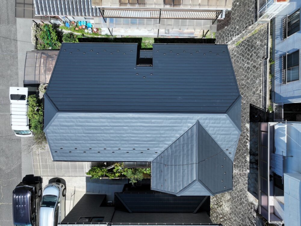 ガルバリウム鋼板の屋根材を屋根に合わせてカットし取り付けていきます。