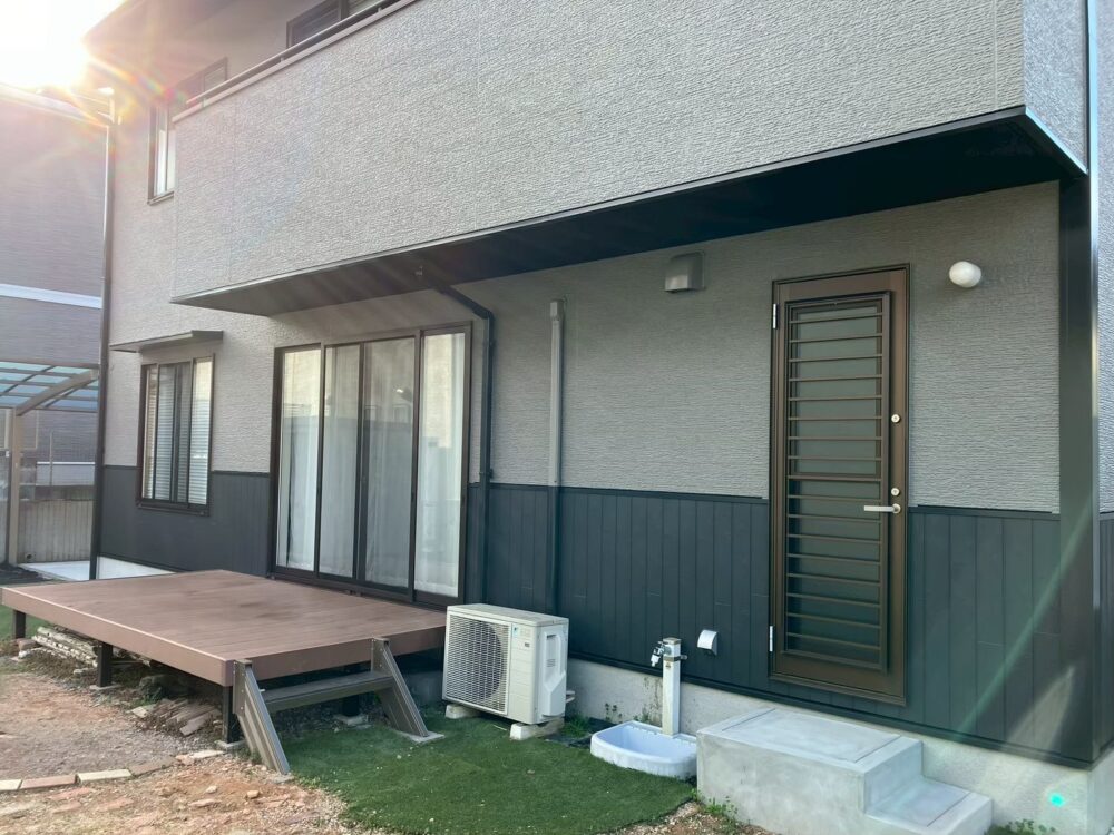 この度、当社にて外壁塗装工事・シーリング工事をさせていただいたお客様のご紹介です。 両隣のお住まいを当社で施工させていただいたご縁をきっかけに、ご依頼をいただきました。 お色選びは、当社の施工事例をご覧いただきながら決定。 実際の仕上がりを確認いただくことで、イメージに近い配色をお選びいただきました。 また、外観は全体的に濃い色合いのため、重たく見えないよう艶消し仕上げを採用。 落ち着きと高級感のある外観に仕上げています。